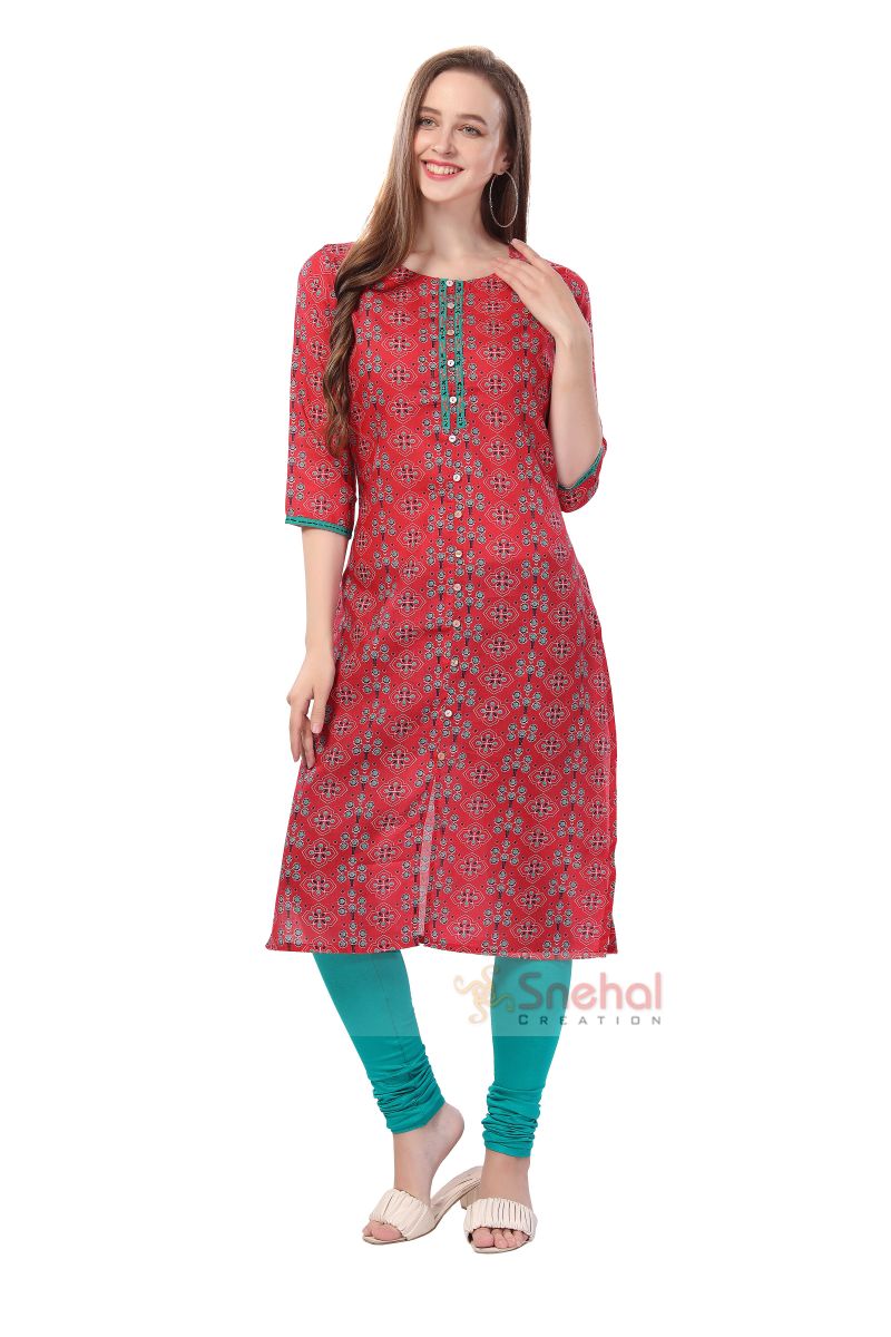 Discover the perfect blend of comfort and style with our Red Cotton Printed Long Tunic for Work Wear. Crafted with care, this tunic features a unique print, making it an ideal choice for your professional wardrobe. Shop now at Snehal Creation and elevate your workwear fashion effortlessly.