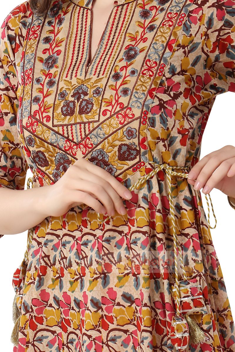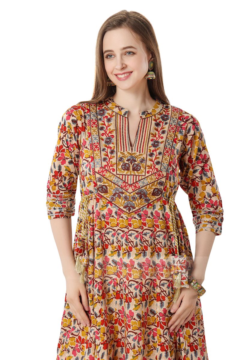 - BEAUTIFUL EMBROIDERY YOKE WITH TUSSLES AND GOTA LACE