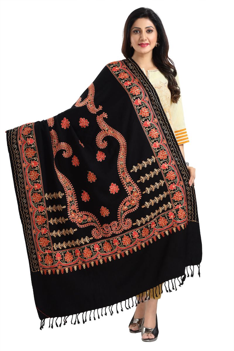 Beautiful Black Indian Shawl With Classy Embroidery For Women