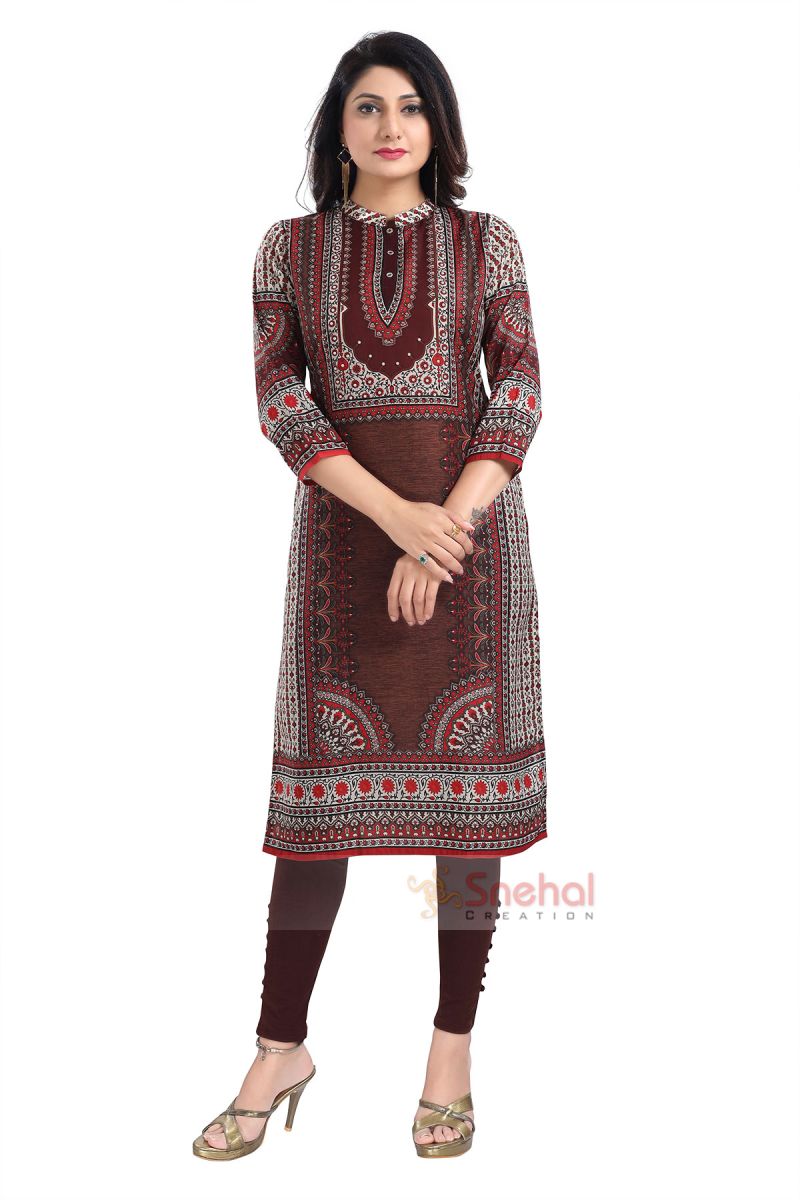 Beautiful Brown Designer Digital Print Masleen Long Kurti Tunic
