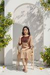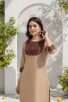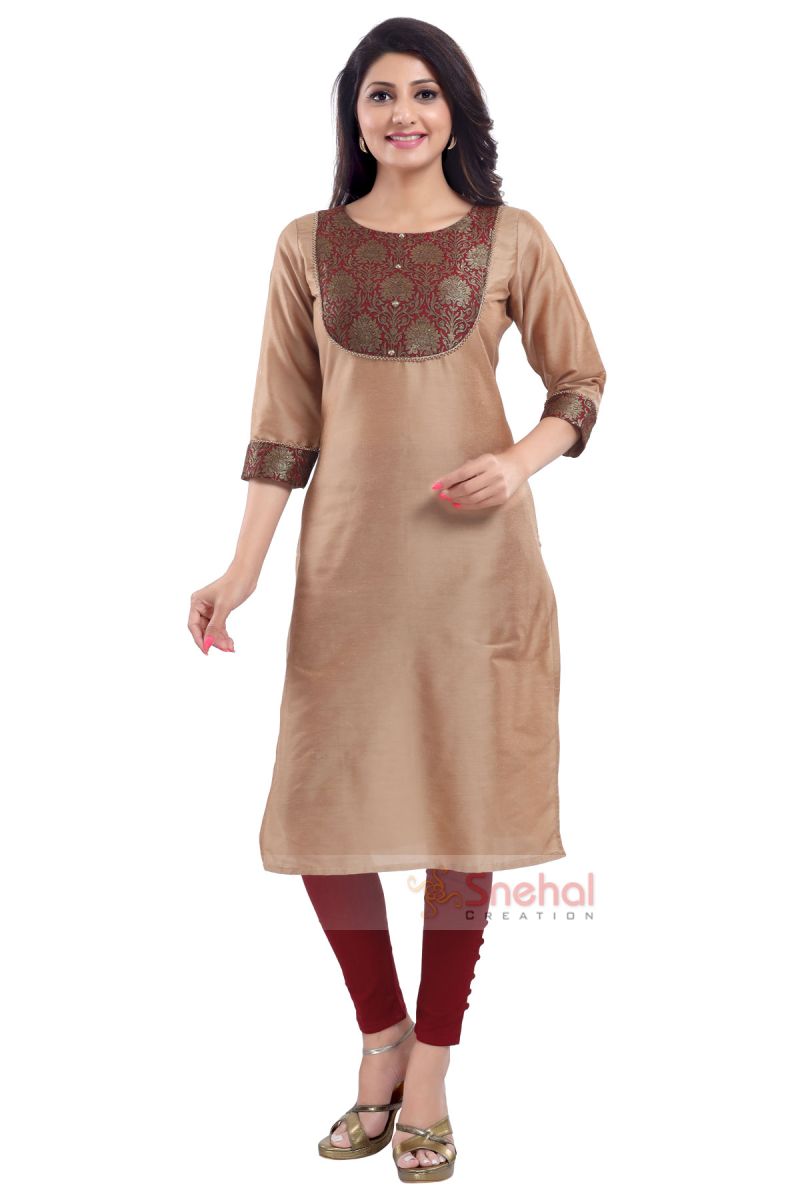 Beige Cotton Silk Long Kurti With Banarasi Yoke