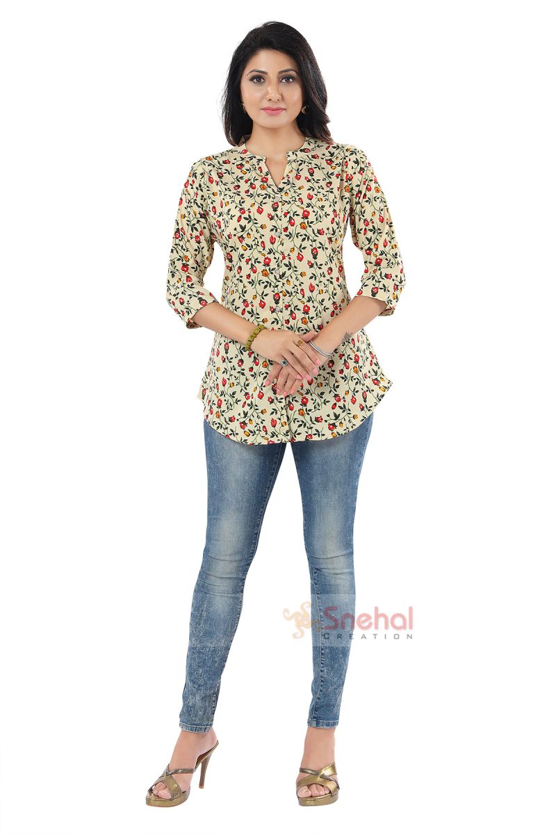 Beige Poly Crepe Short Tunic Top