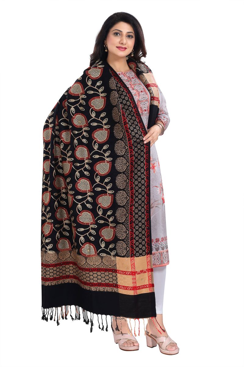Black Beauty Indian Shawl With Exquisite Embroidery For Women