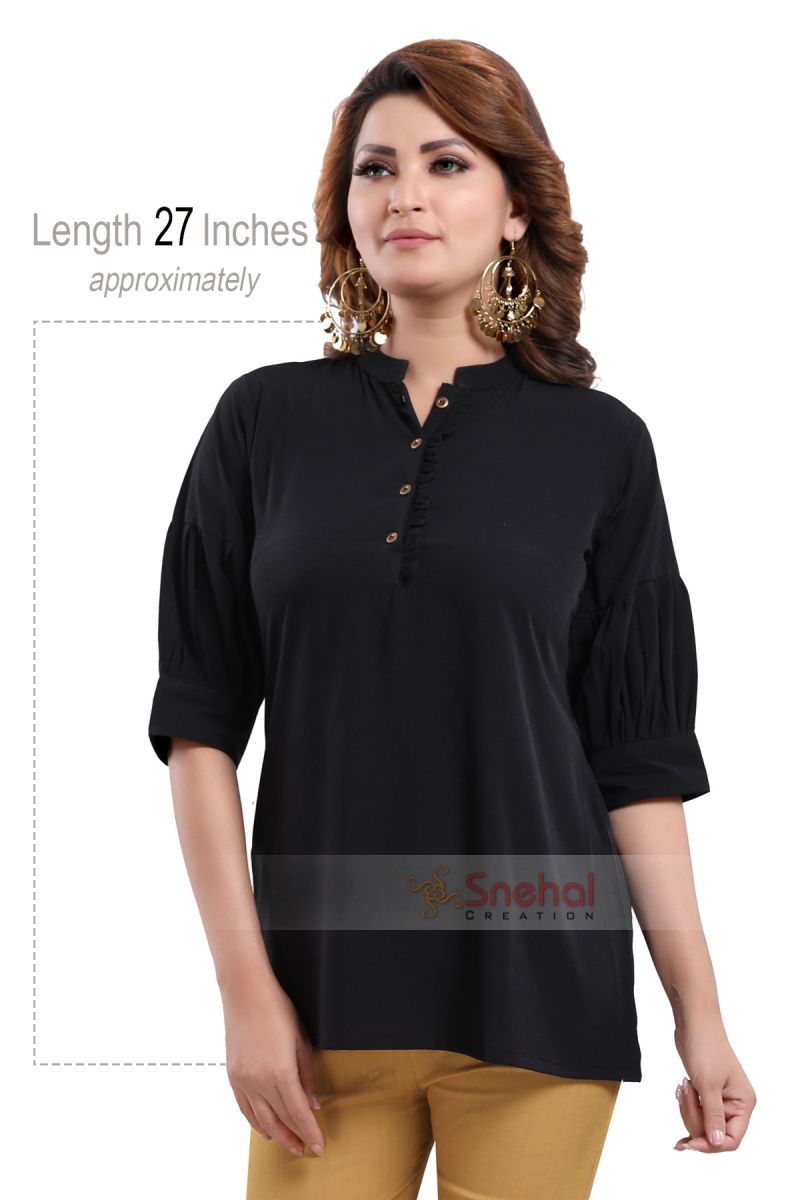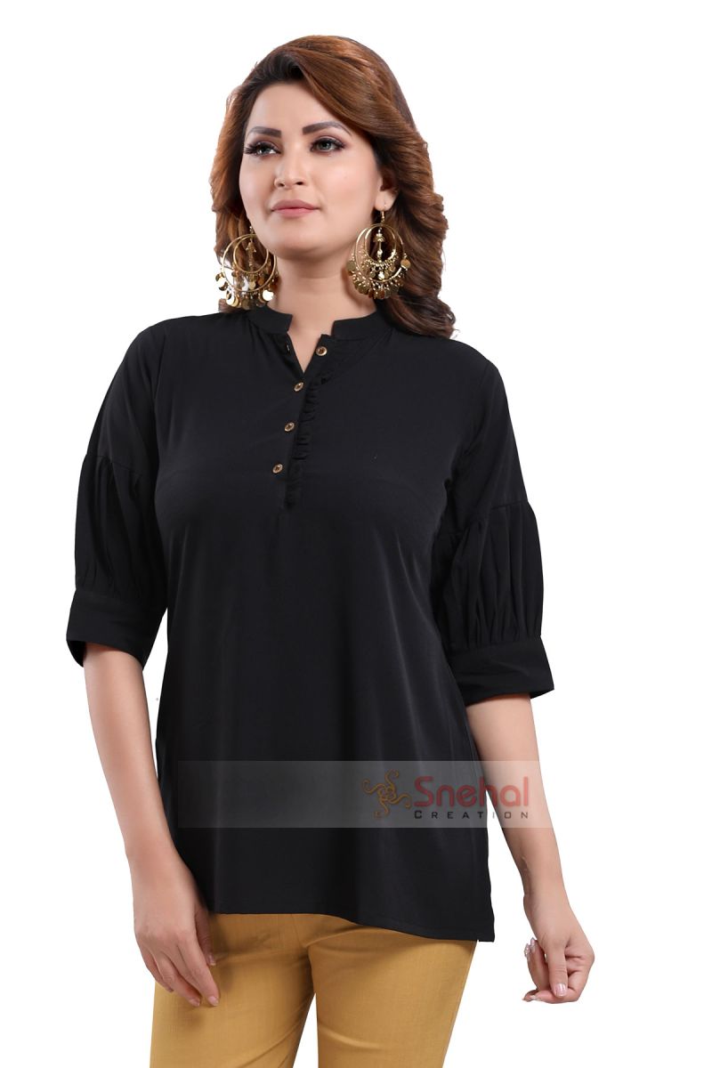 Black Beauty Poly Crepe Office Wear Short Tunic Top