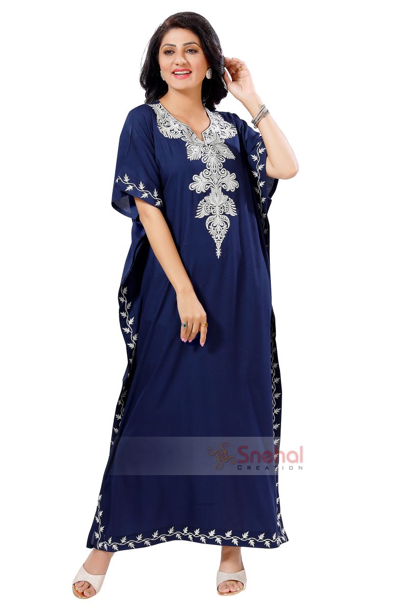 Designer Women Long Kaftan Kimono Beach Maxi Dress Swimsuits Cover Ups dresses is made of Rayon to keep you cool on warm days. They are equipped with inimitable embroidery design for ultimate comfort. They are floating, cool and super stylish, so you can play on the beach, lazy, party, sleep or be in style.
