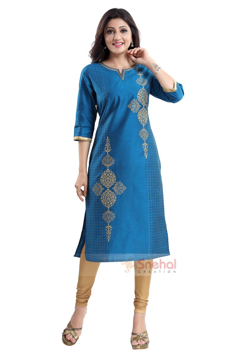 Cotton-Silk-Printed-Long-Kurti-With-Sequence-Highlight