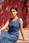 Blue Stylish Denim Dress With Geometrical Print And Embellishment