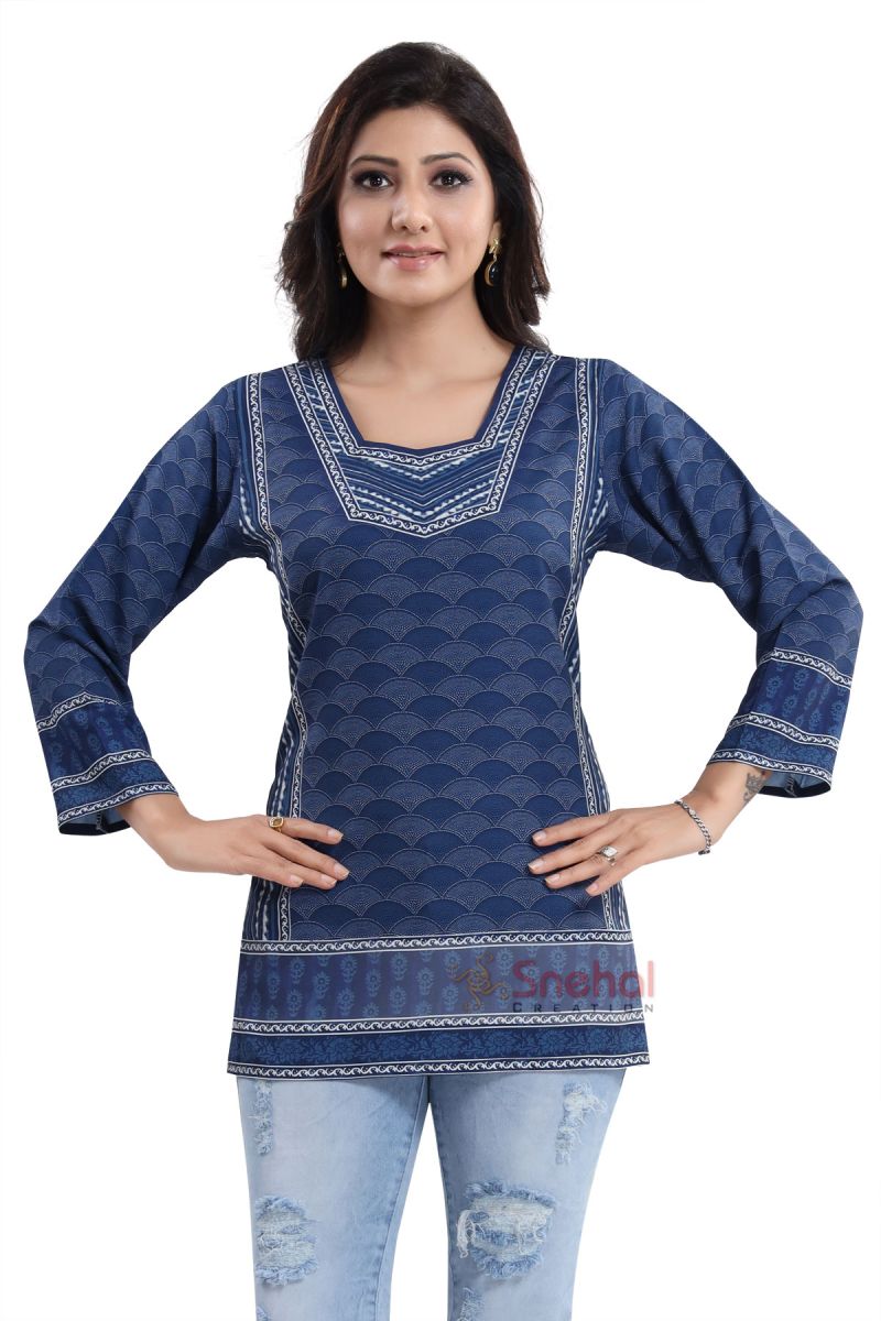Supreme-Style-Red-Rayon-Cotton-Geometric-Print-Short-Tunic-Top
