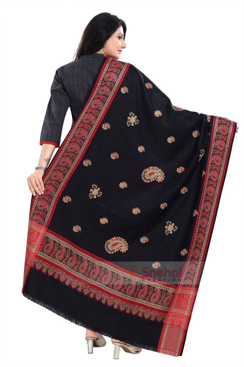 Captivating Embroidery On Trendy And Cozy Indian Black Shawl For Women