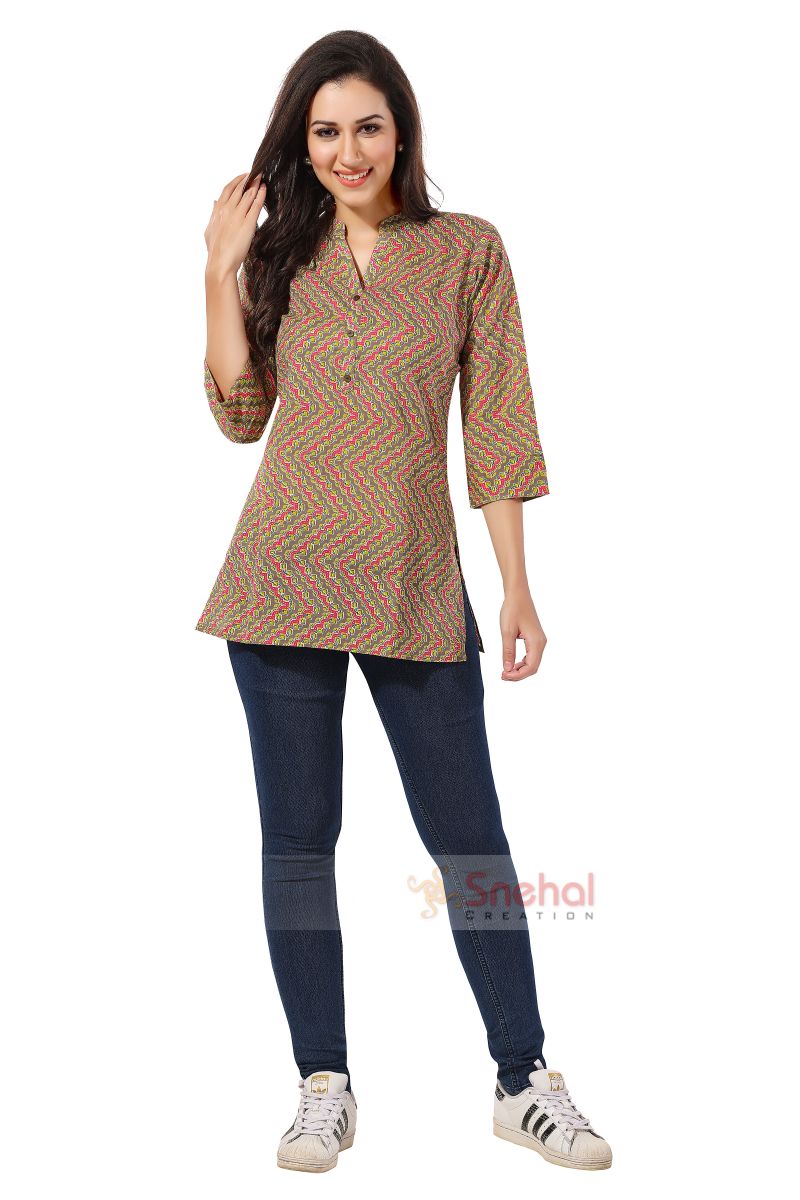 Mehandi-Green-Cotton-Printed-Short-Tunic-Top