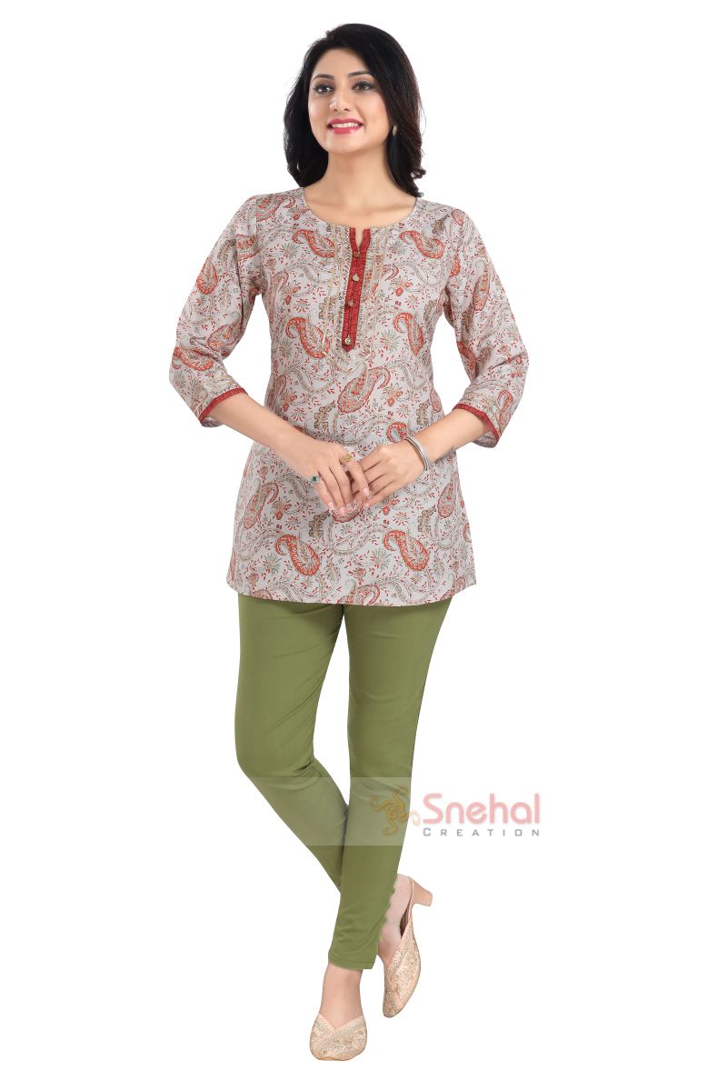 PRETTY PASTLE VARIYALI GREEN RAYON SHORT KURTI TUNIC TOP