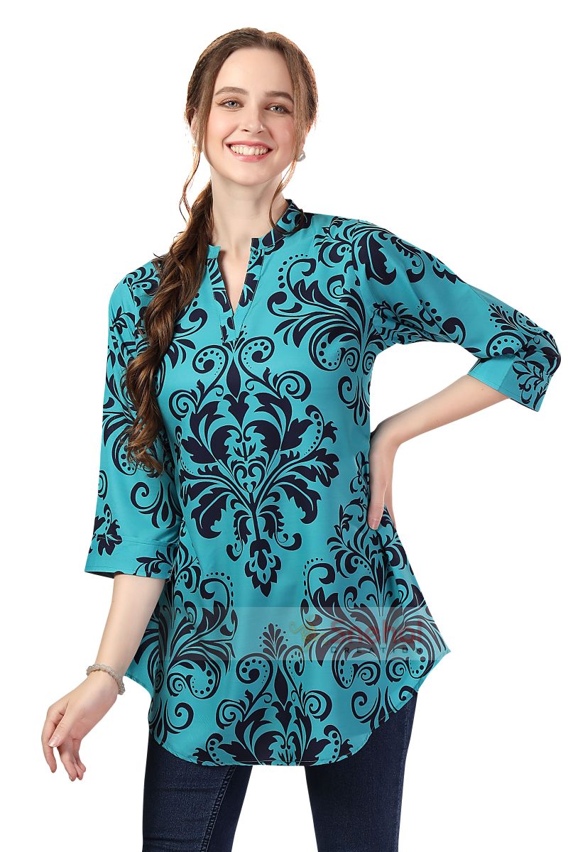 Chic Contrast Faux Crepe Tunic with Stylish Print