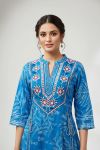 Choice Turquoise Cotton Anarkali With Embroidery Yoke and Tussles. Full umbrella flair of 28 kalis for a graceful look.