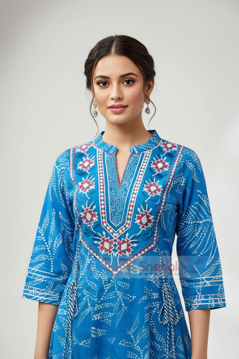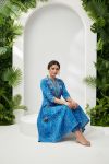 Choice Turquoise Cotton Anarkali With Embroidery Yoke And Tussles