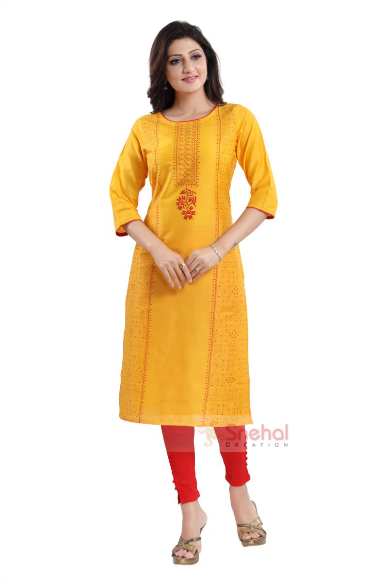Cotton Silk Printed Long Kurti With Sequence Highlight