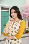 Cream Cotton Printed Apple-Cut Short Tunic with thread work at neckline