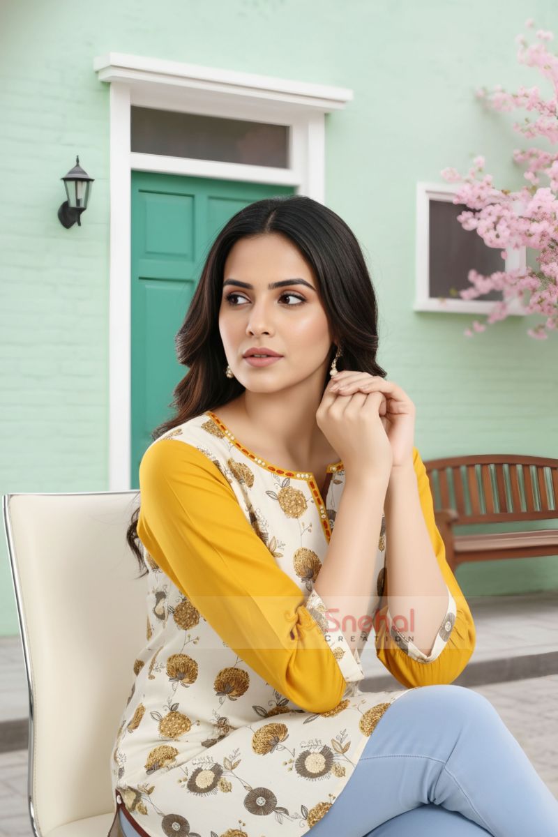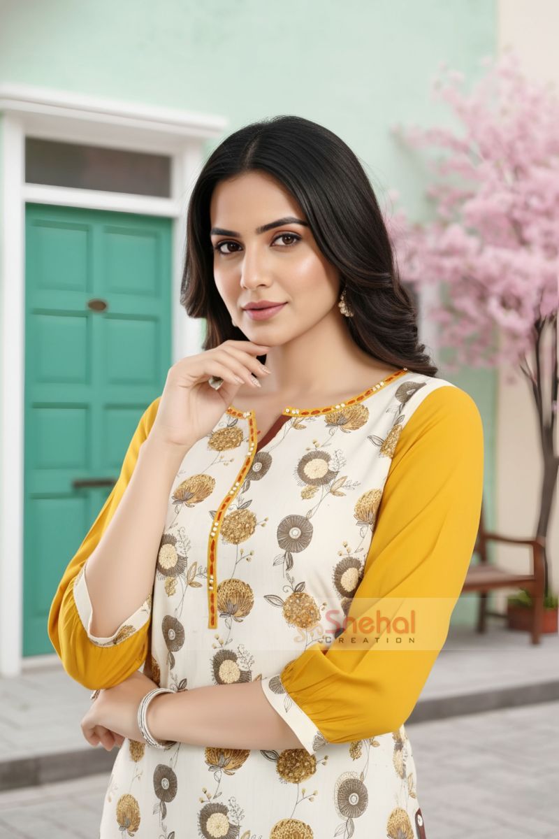 Elegant Rayon Black And Cream Tunic Top Kurta With Show Buttons For Women