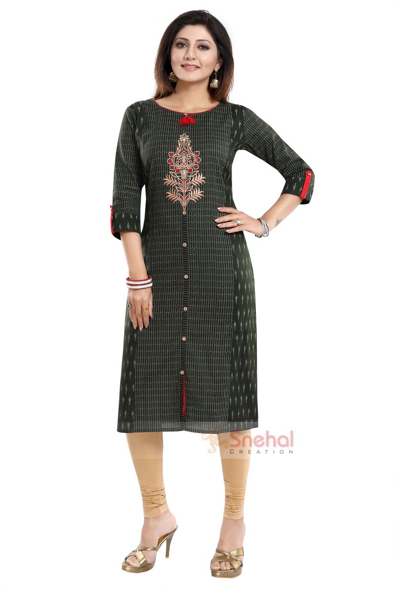 DESIGNER COTTON KURTI WITH EMBROIDERY