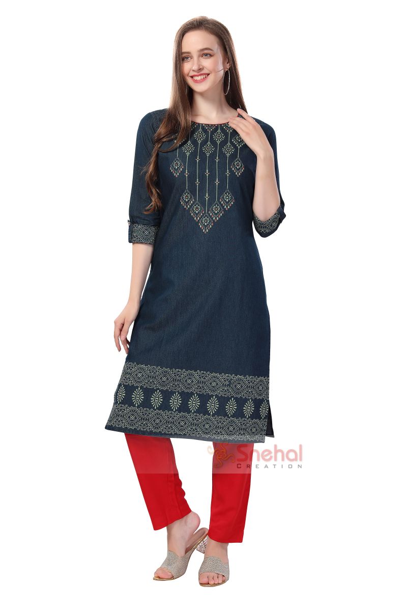 Denim-Tunic-With-Print-and-Thread-Embroidery