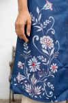 Designer Denim Blue V Neck A Line Indo Western Dress. Dual Ethnic Motif Prints looks exclusive and the mirror handwork on front side with V-Neck Pattern make it party wear dress.
