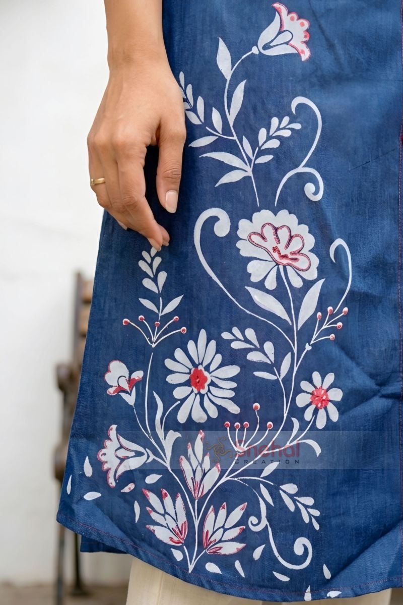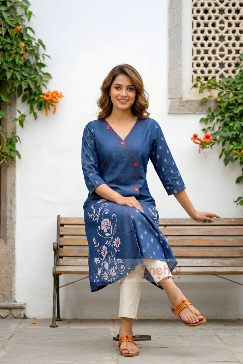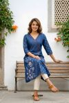 Blue-Ethnic-Print-Rayon-Short-Kurti-for-Women-Princess-Cut-Design Blue-Ethnic-Print-Rayon-Short-Kurti-for-Women-Princess-Cut-Design Indigo Denim Kurti for Women with Ethnic Print and Thread Work Indigo Denim Kurti for Women with Ethnic Print and Thread Work