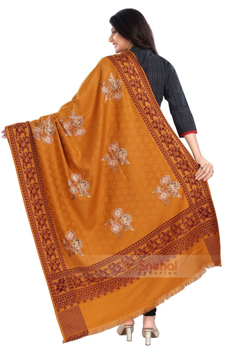 Designer Embroidery On Trendy And Cozy Indian Mustard Shawl For Women