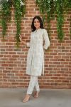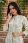 Designer Green Abstract Print Ban Collar Cotton Co Ord Set
