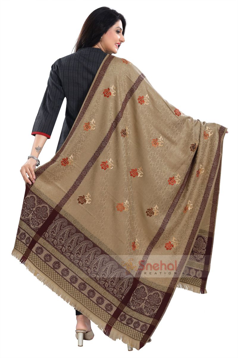 Divine Embroidery On Trendy And Cozy Indian Beige Shawl For Women