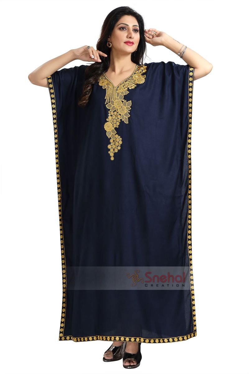 Dynamic Blue Designer Women Long Kaftan Kimono Beach Maxi Dress is made of Rayon to keep you cool on warm days. They are equipped with inimitable embroidery design for ultimate comfort. They are floating, cool and super stylish, so you can play on the beach, lazy, party, sleep or be in style.