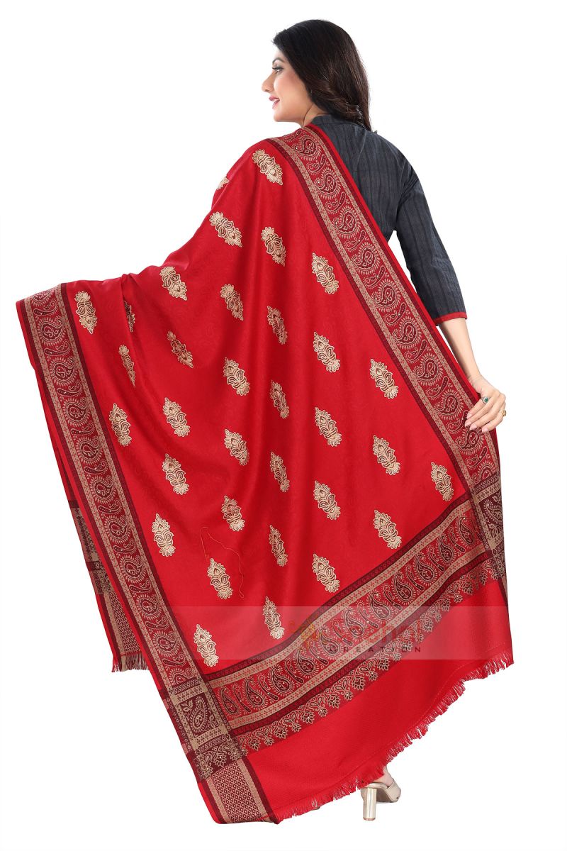 Elegant Embroidery On Trendy And Cozy Indian Maroon Shawl For Women