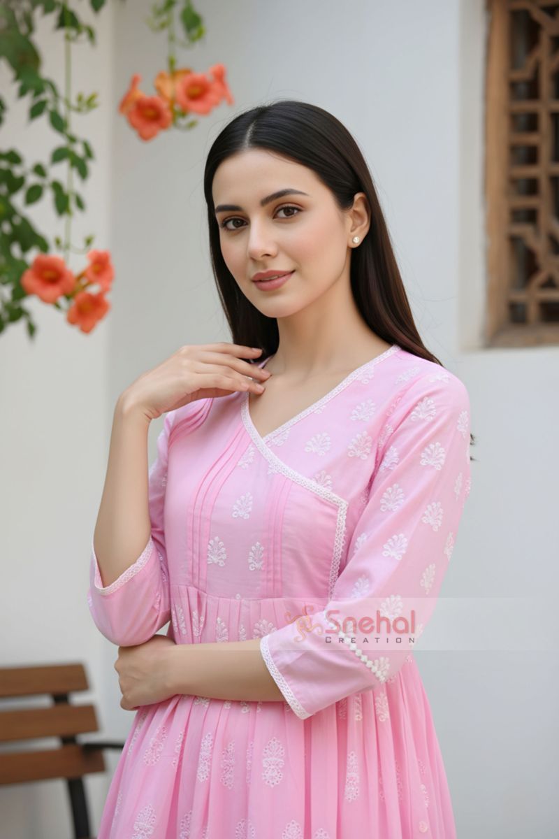 Premium chikankari embroidery Stylish peplum silhouette for a flattering fit Designer neckline with delicate lace detailing Comfortable 3/4 sleeves Soft and breathable fabric Perfect for casual, office