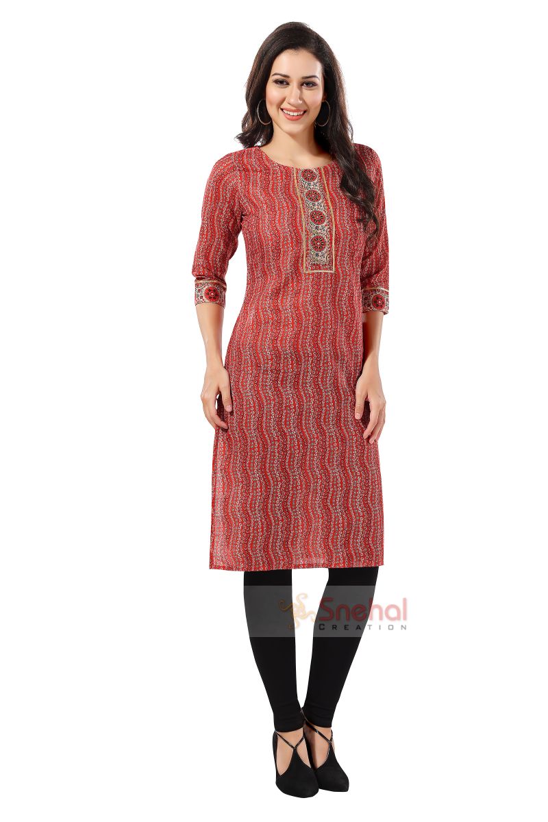 Discover the perfect blend of style and comfort with the Red Cotton Printed Long Tunic for workwear from Snehal Creation. This trendy tunic is crafted from high-quality cotton fabric and features captivating prints that add a touch of elegance to your professional wardrobe. Stay fashion-forward and comfortable throughout the day with this versatile long tunic. Shop now and elevate your workwear style!