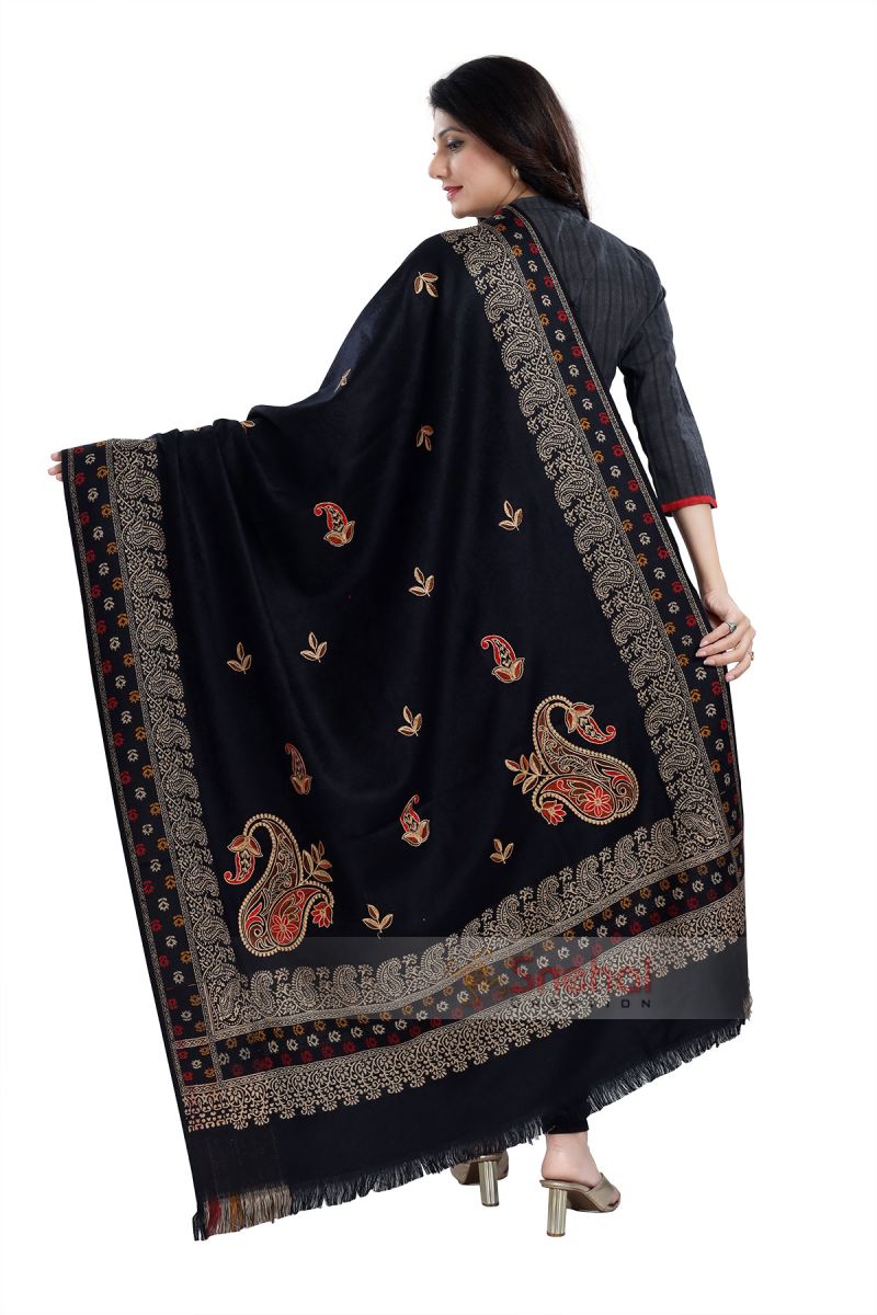 Enchanting Embroidery On Trendy And Cozy Indian Black Shawl For Women