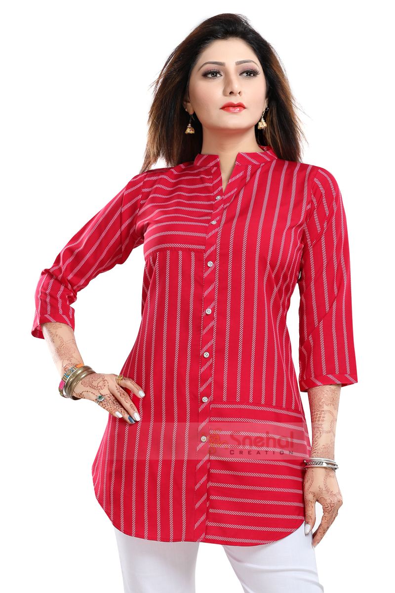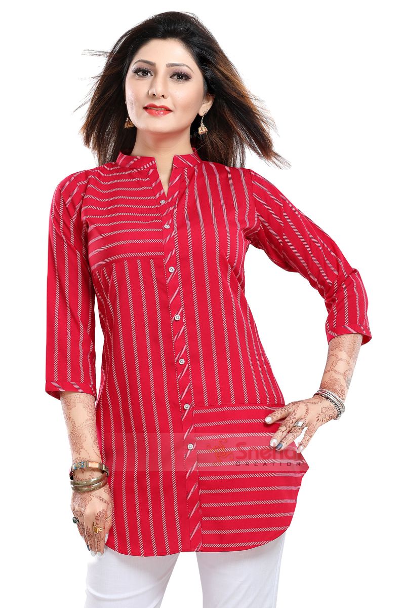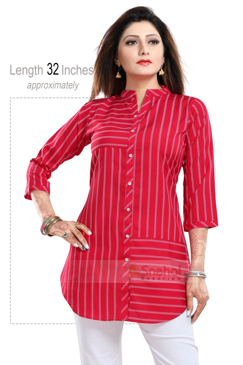 Exquisite Hot Pink Poly Crepe Short Tunic