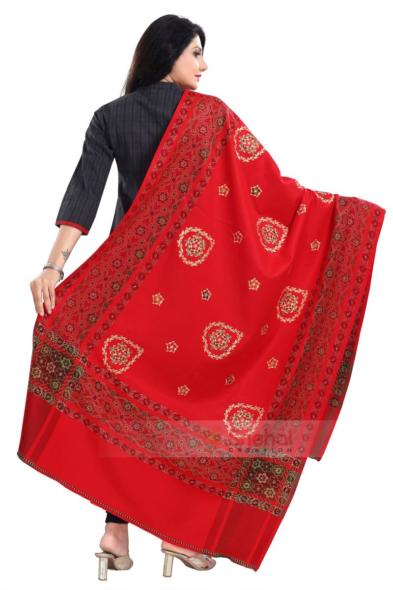 Fascinating Embroidery On Trendy And Cozy Indian Red Shawl For Women