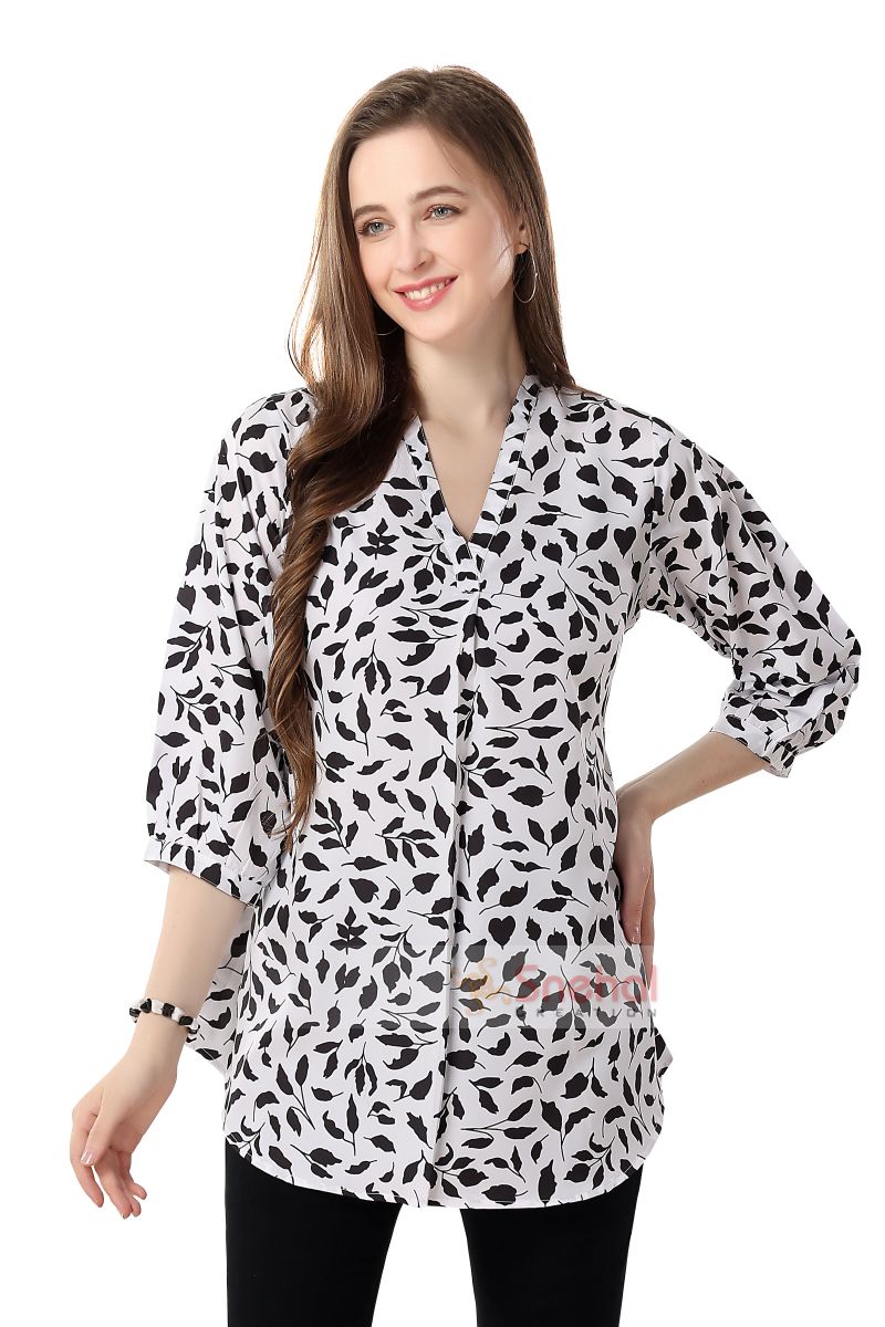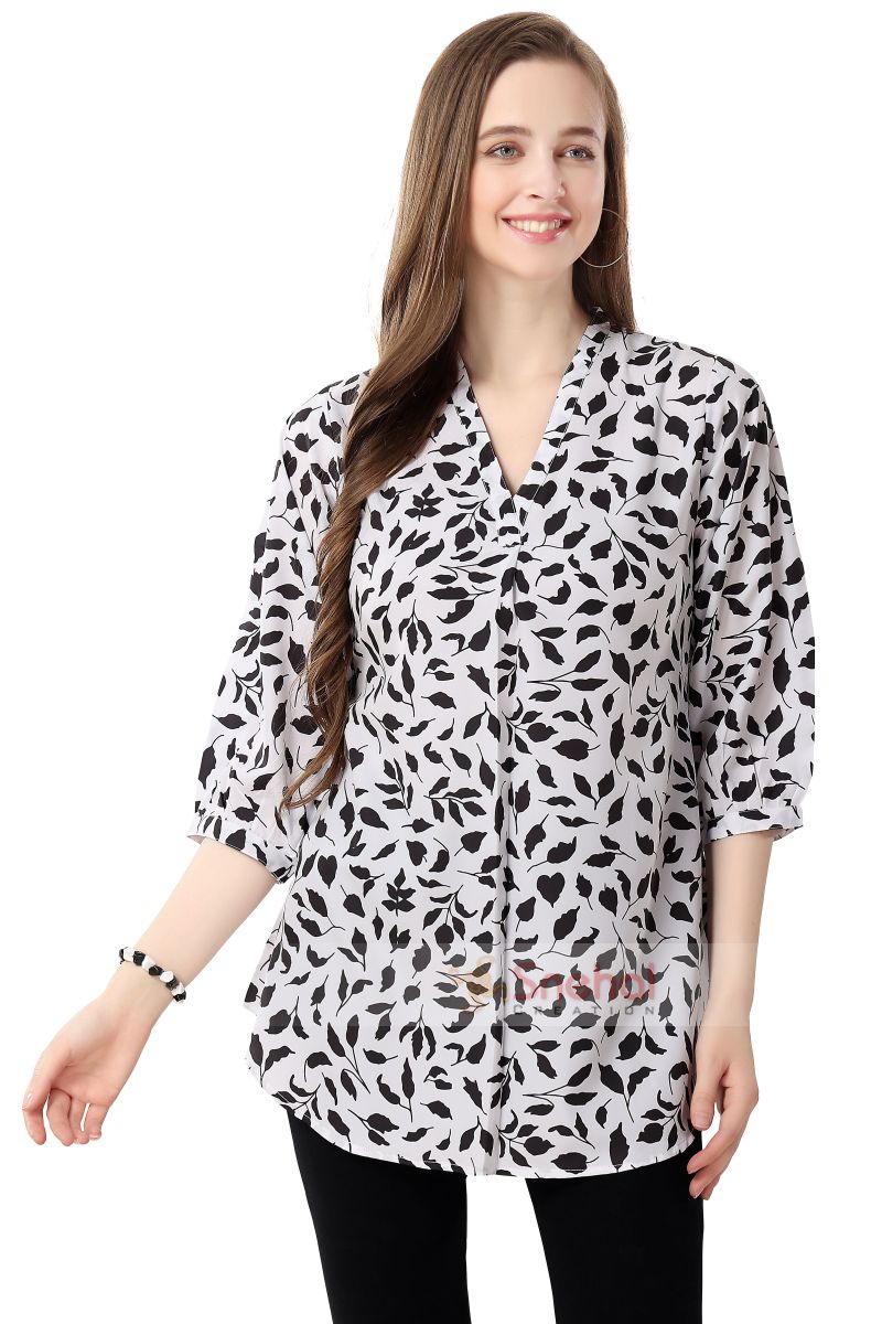 Unique-Faux-Crepe-Tunic-with-Stylish-Black-and-White-Patterns