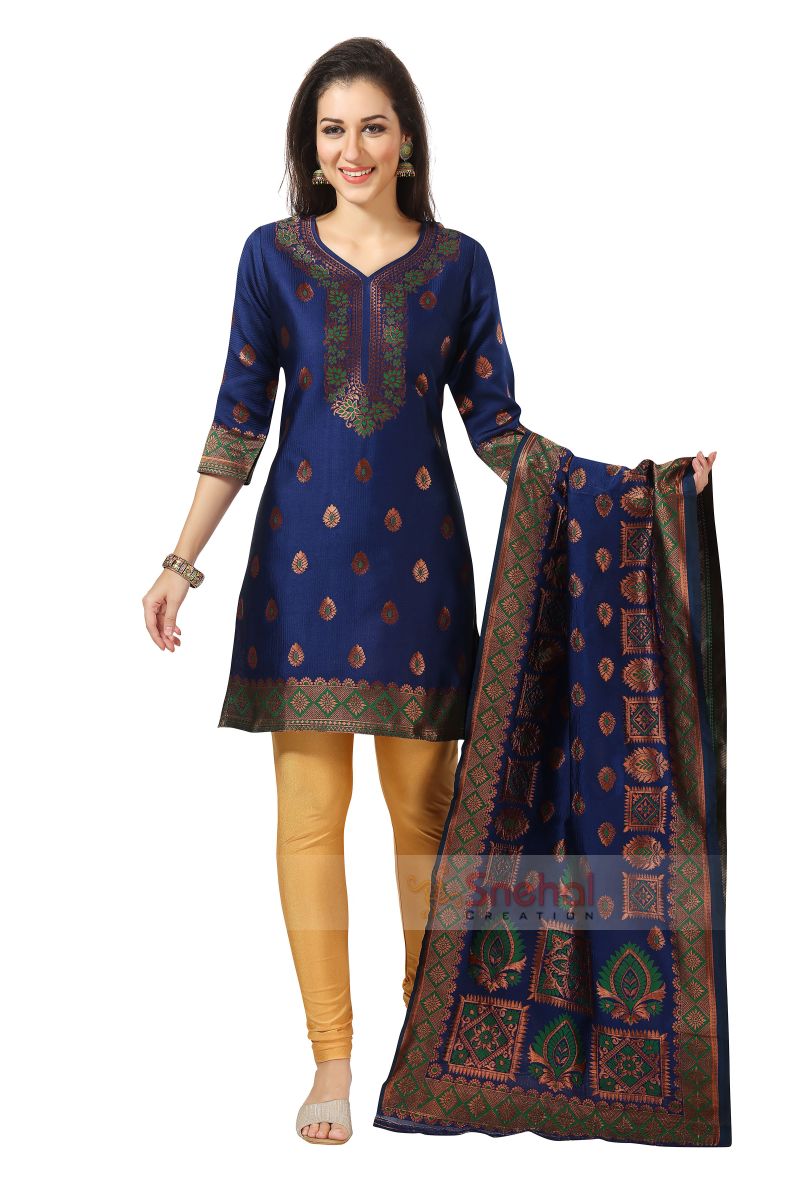 Indulge in the rich heritage of Banarasi craftsmanship as you adorn yourself with these resplendent kurtis. The luxurious Jacquard fabric drapes you in regal charm, while the delicate motifs shimmer like stars against the night sky. Whether it is a traditional gathering or a contemporary soirée, our Banarasi Jacquard Kurtis effortlessly elevate your style quotient, making you the cynosure of all eyes.