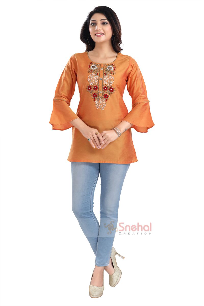 Gorgeous Gold Cotton Silk Designer Indian Beaded Tunic Top