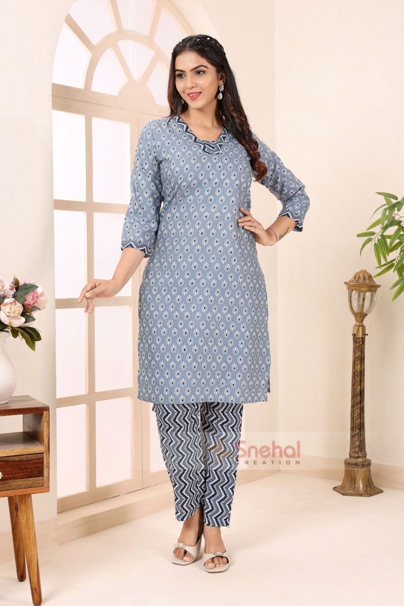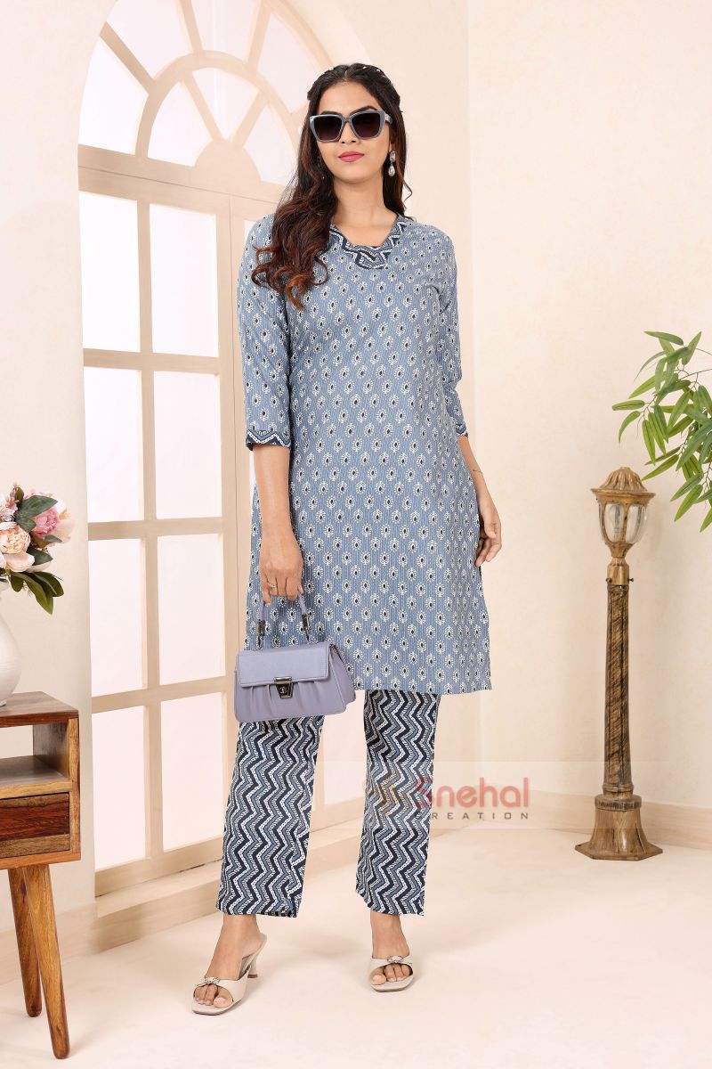 Gorgeous Grey V Neck Kurti Pant Suit For Women