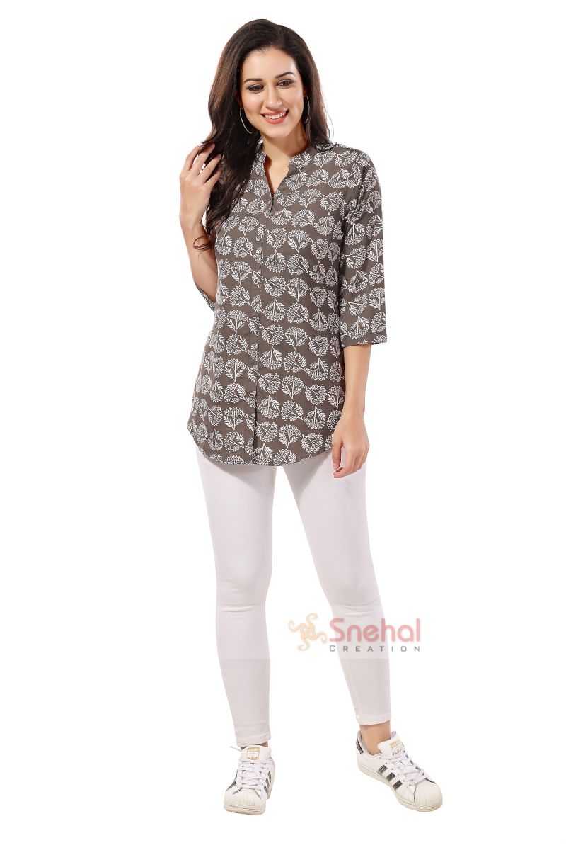 Graceful Grey Poly Crepe Short Tunic Top For Everyday Wear