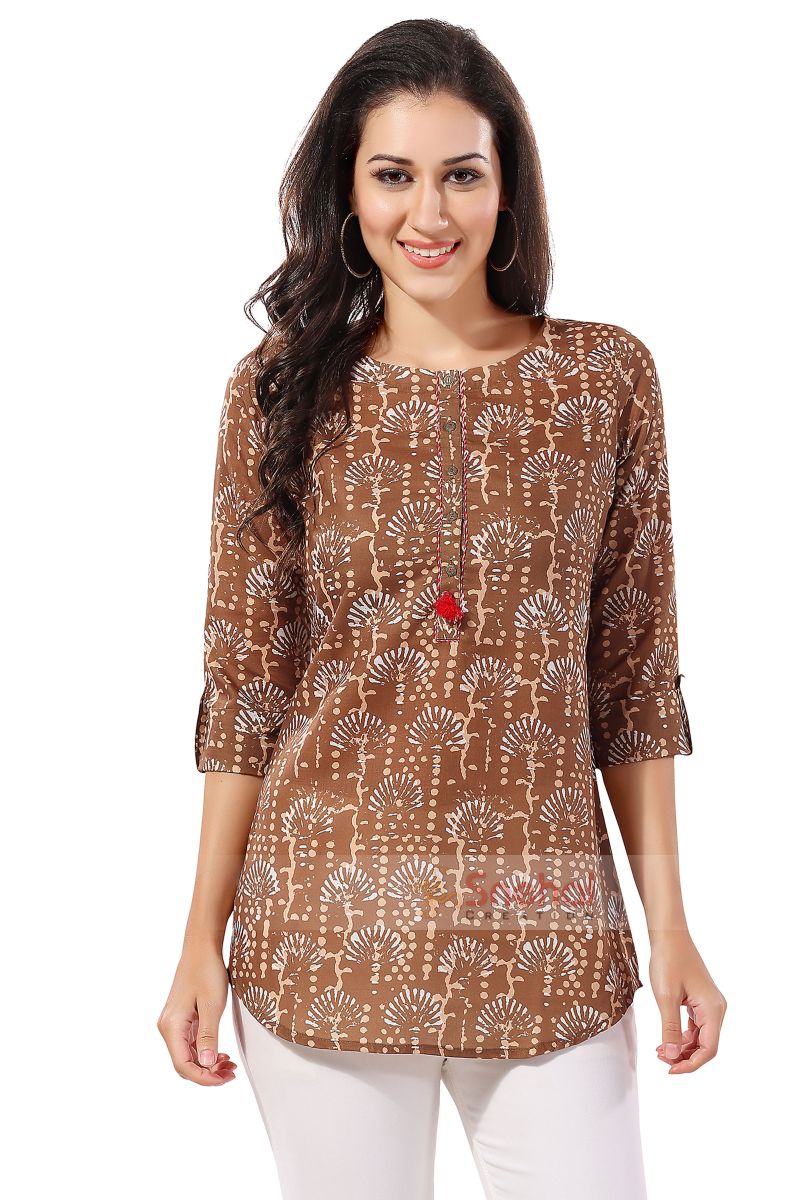 Stylish-Rust-Cotton-Printed-Long-Tunic-for-Work-Wear-By-Snehal-Creation