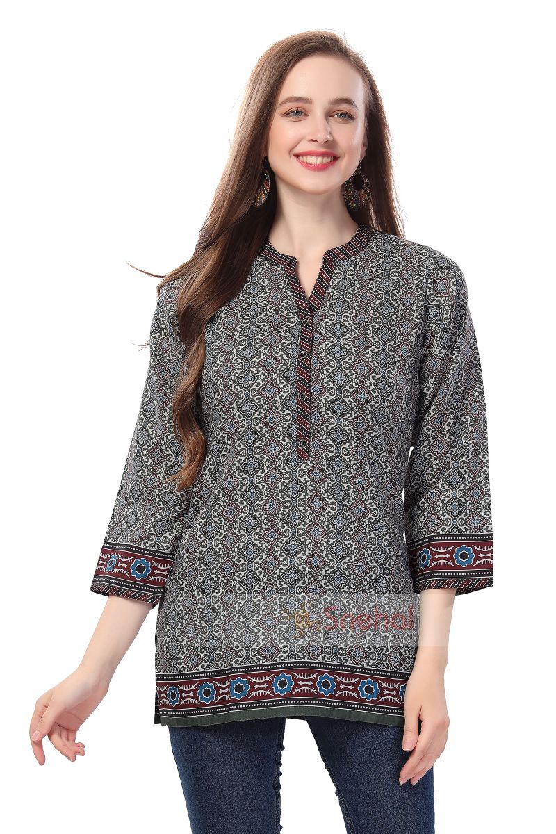 Green Flex Cotton Designer Tunic Top