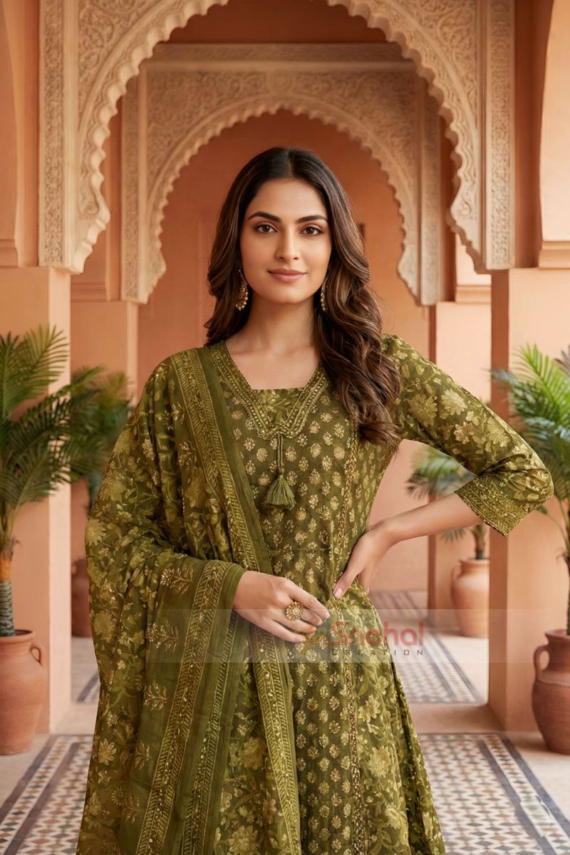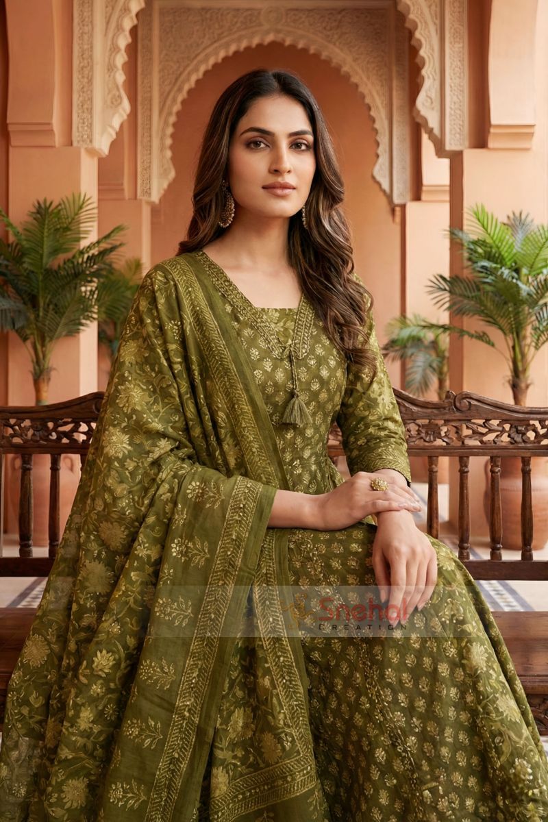 Buy Green Jaipuri print cotton kurta pant dupatta set for women. Comfortable, stylish and perfect for festive, daily and office wear.