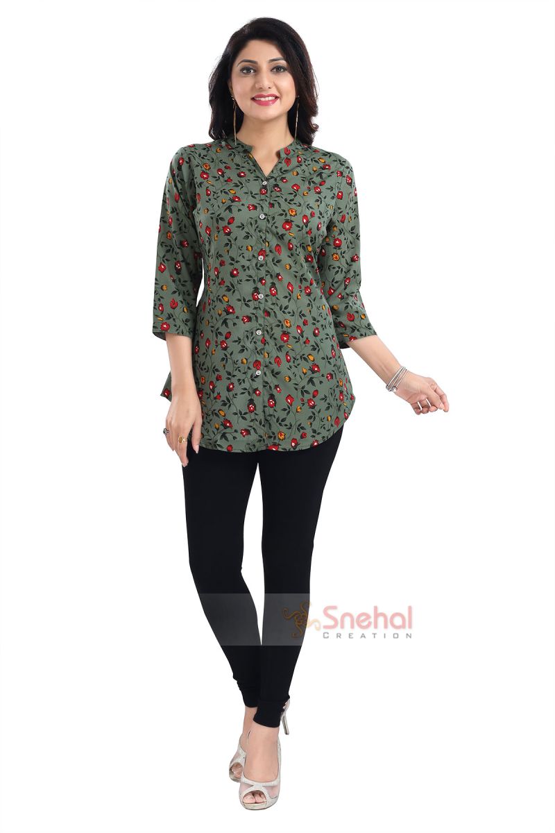 Green Poly Crepe Short Tunic Top