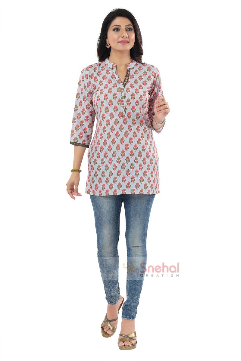 Maroon Women Printed Long Kurti Tunic with Gota Laces and Piping