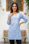 Color/Design: LIght Blue kurti with intricate white chikankari embroidery