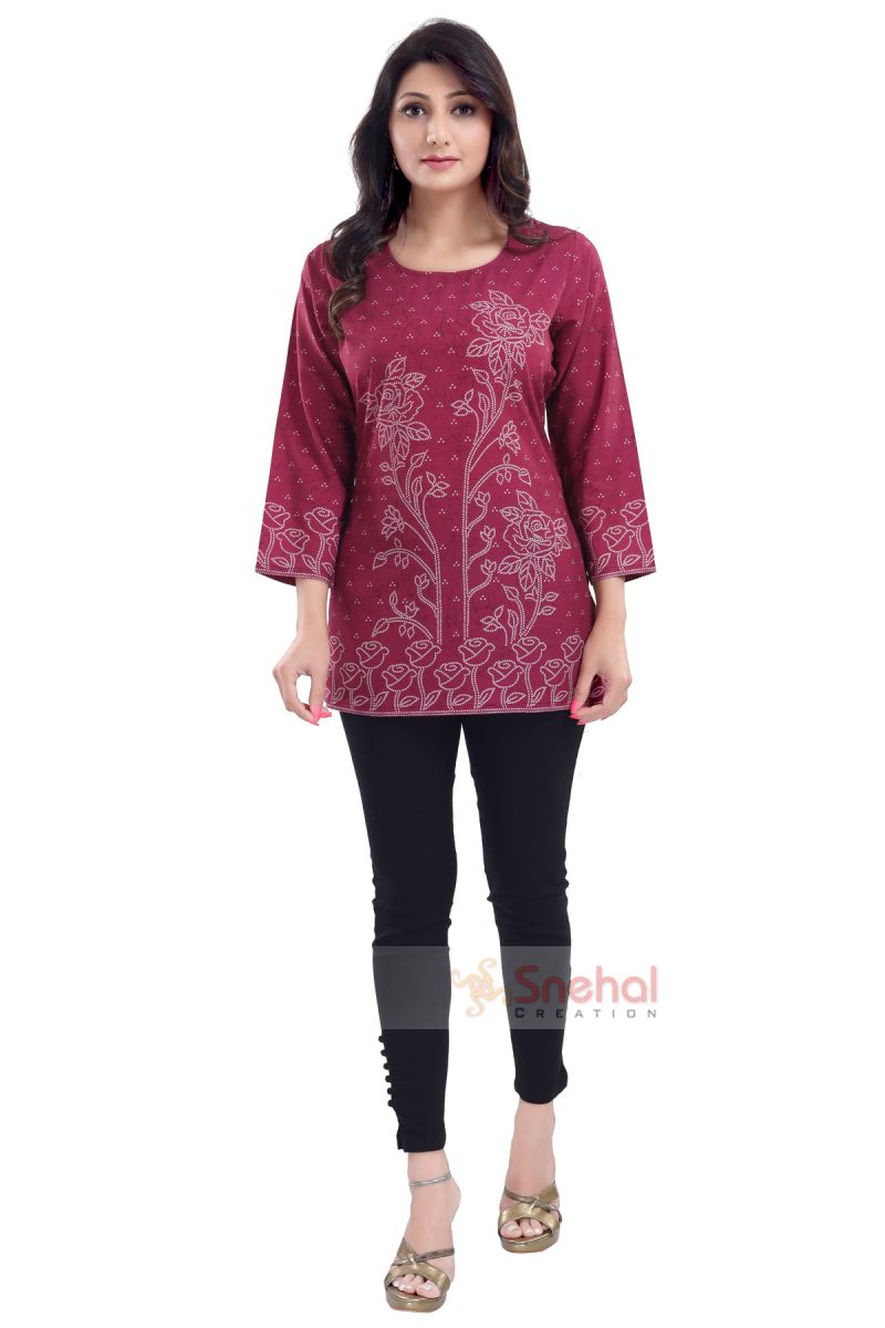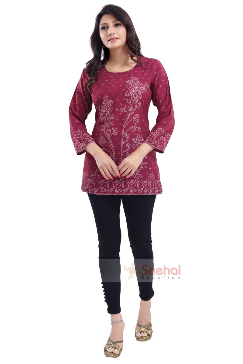 DESIGNER BEIGE RAYON PRINT LONG KURTI