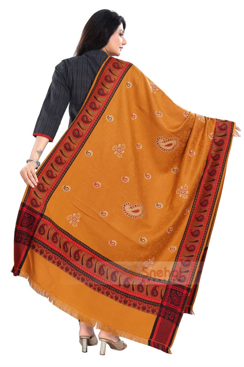 Magical Embroidery On Trendy And Cozy Indian Mustard Shawl For Women