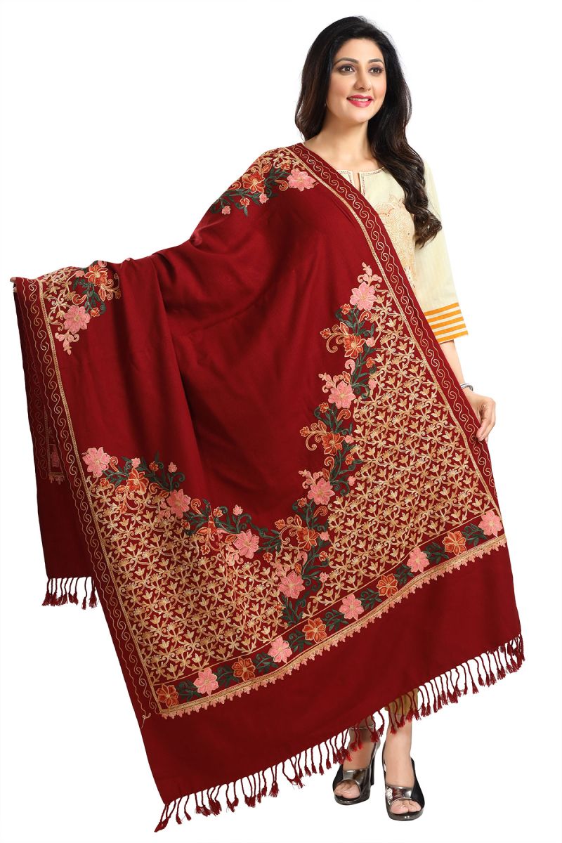 Magnificient Maroon Indian Shawl With Elegant Embroidery For Women