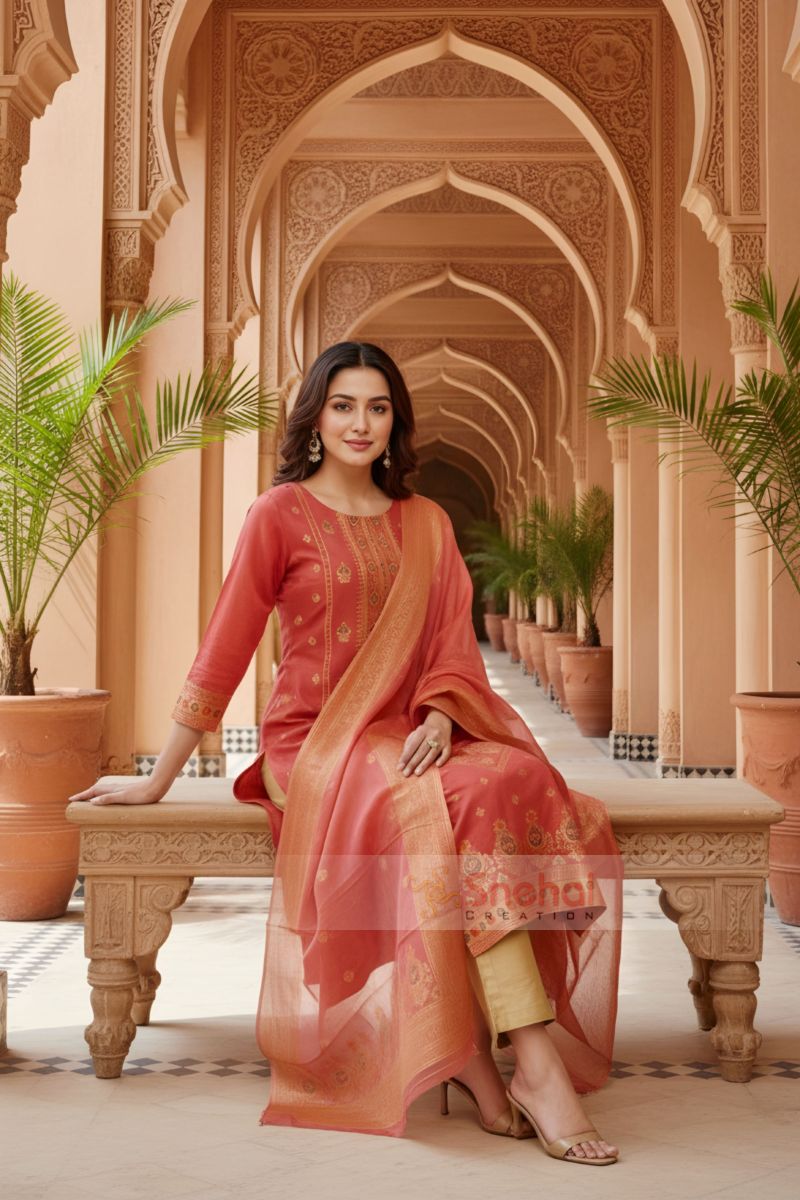 Ideal for festive gatherings, cultural occasions, and elegant day wear, this set reflects classic craftsmanship with a modern silhouette making it a versatile addition to any ethnic wardrobe.